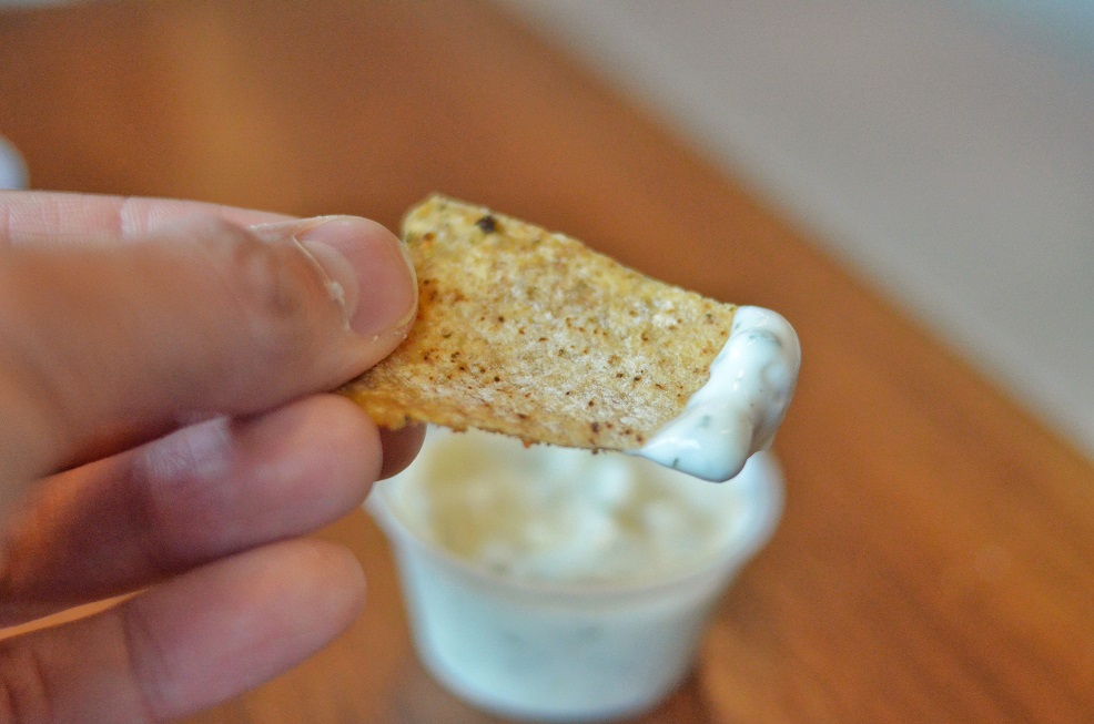We also sampled some of their house made pita chips. These went nicely with the salsa and tzatziki sauce. The chips were very thin and light to eat.